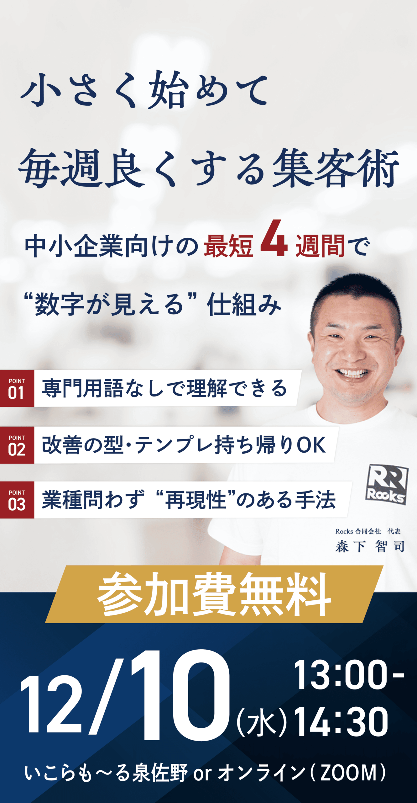社長・現場のご担当者どちらでも理解できる内容で、明日から着手できる“型”をお持ち帰りいただけます。
