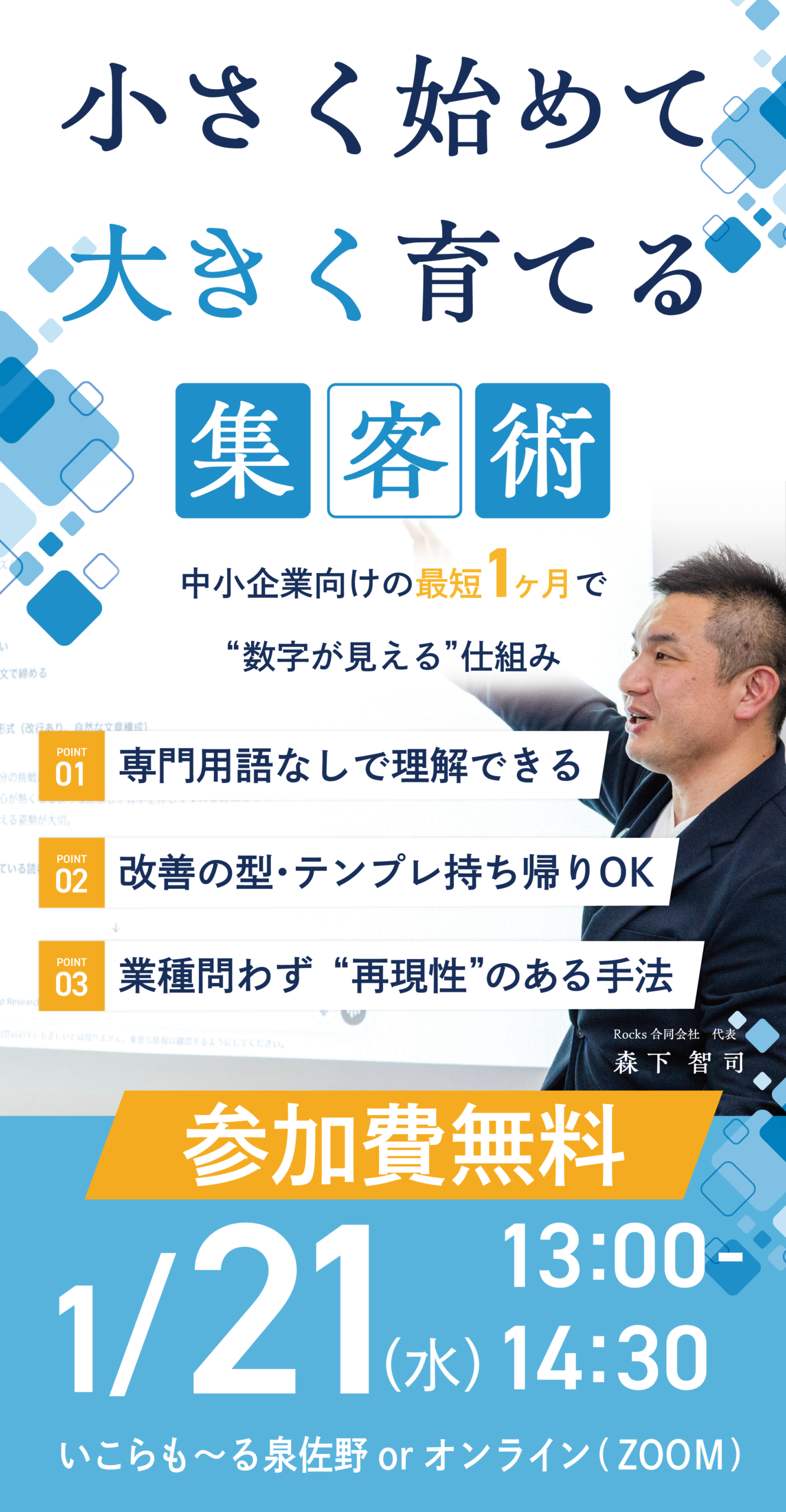 社長・現場のご担当者どちらでも理解できる内容で、明日から着手できる“型”をお持ち帰りいただけます。
